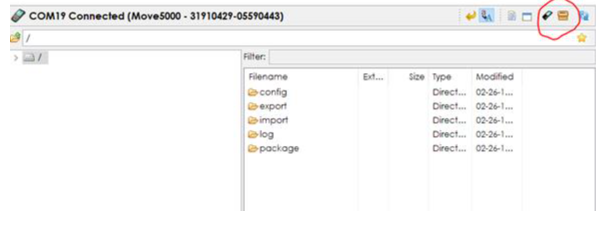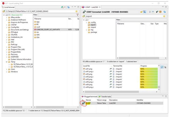 Aguardar 5 segundos e desconectar o terminal clicando duas vezes no ícone de conexão. O mesmo irá reiniciar e entrar automaticamente no modo download.