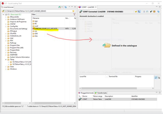 Na tela do lado esquerdo navegar até onde se encontra o pacote, selecionar o pacote MODELO_GSURF_SC3_X.M7x e arrastar para a tela do lado direito.
