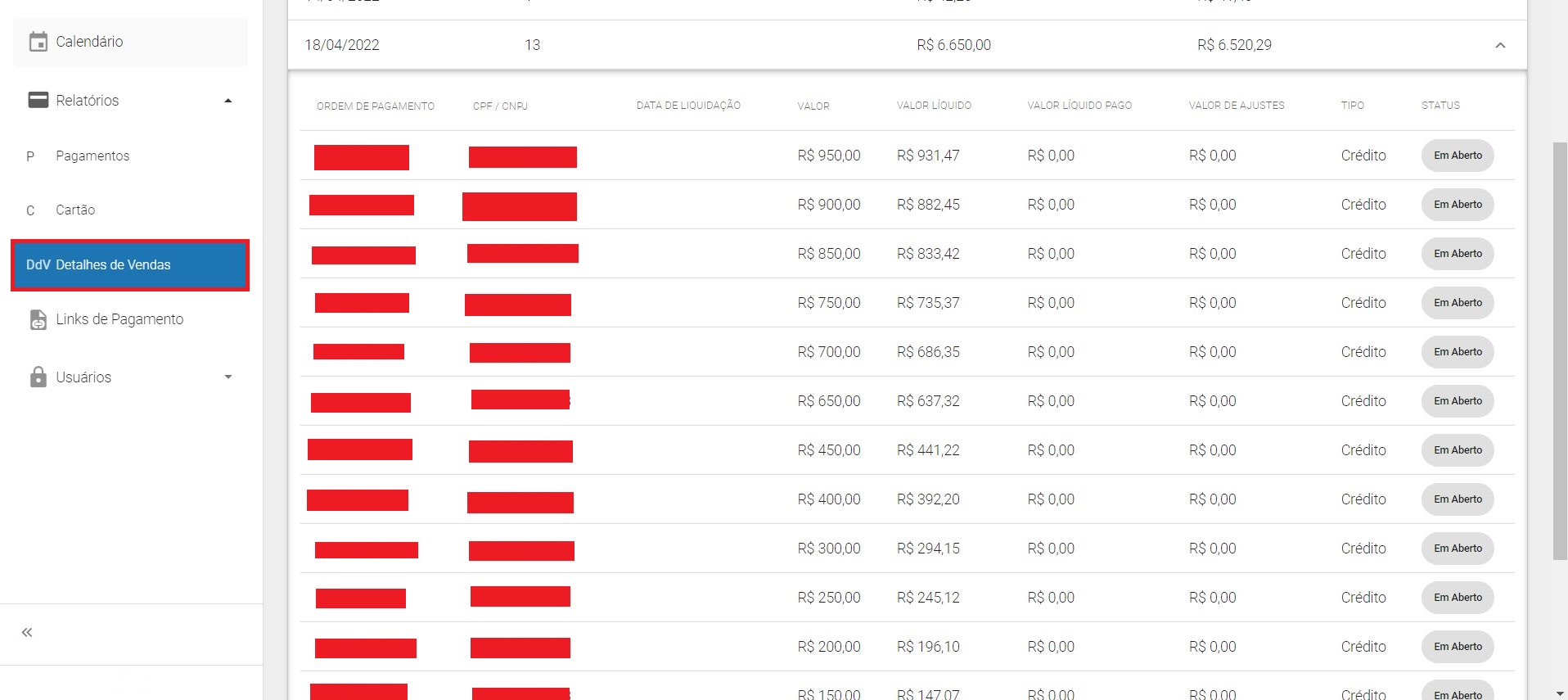 No exemplo a seguir, estamos verificando os detalhes de vendas, realizadas no dia 18/04/2022.
